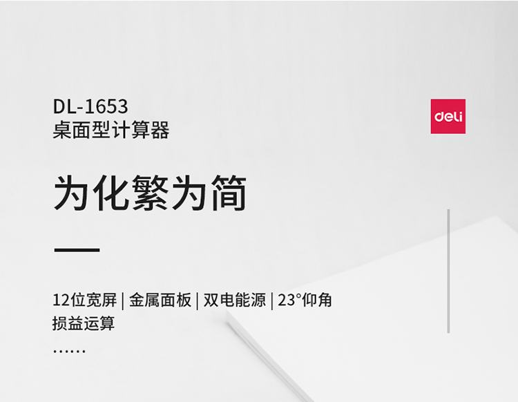 得力(deli)雙電源寬屏辦公桌面計算器 財務(wù)計算機(jī) 辦公用品 銀白色1653
