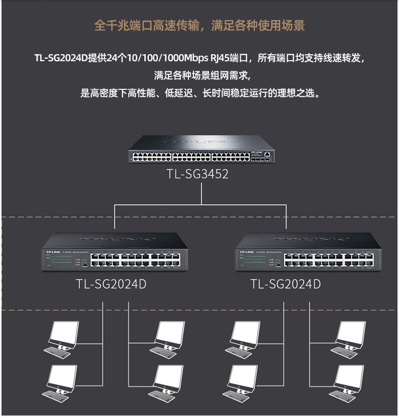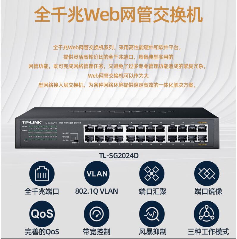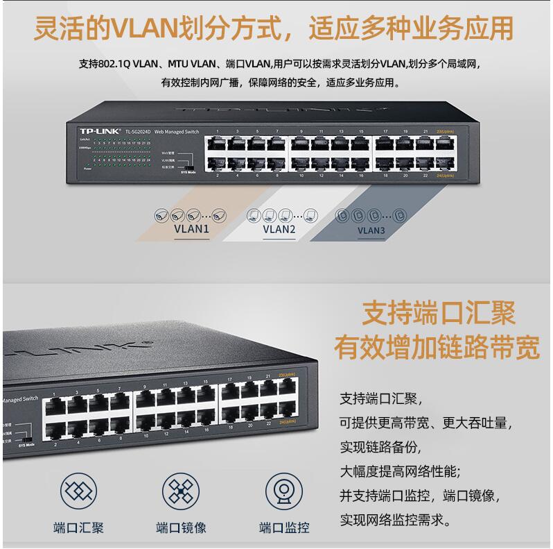 tplink24口千兆交換機16口48口百兆監(jiān)控專用網(wǎng)絡無線網(wǎng)線分流轉(zhuǎn)換交換器以太網(wǎng)企業(yè)web網(wǎng)管級VLAN匯聚SG2024D
