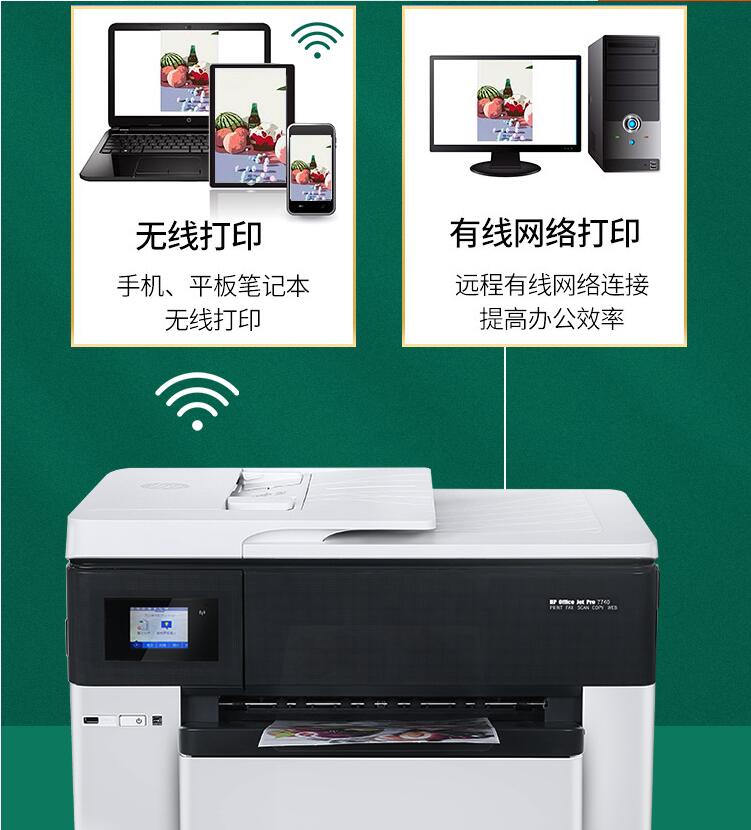 惠普A3彩色照片打印機(jī)復(fù)印一體機(jī)7740噴墨自動雙面A4辦公家用無線